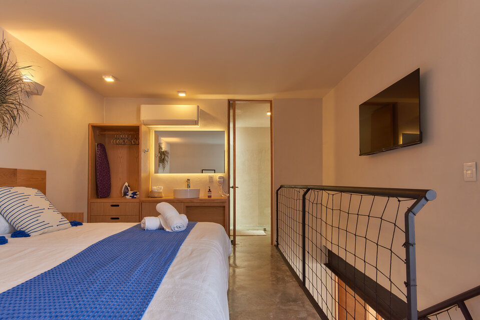 - 1 Cama King en la parte superior y 1 Sofa cama en la parte inferior.